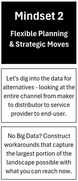 Mindset 2 leads to analytical and strategic responses to the tariff impositions. Three principal ones stand out, and they all require segmented data to present you with the best options.