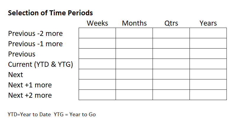 As with Results, we need to be able to handle a wide range of time periods, going back and going forward, a lot or a little, to perform analysis. We find that the further back or forward we are going, the less need for detail lines and periods there is. So the demands of these out periods are lower. However for certain assignments they are necessary nonetheless.