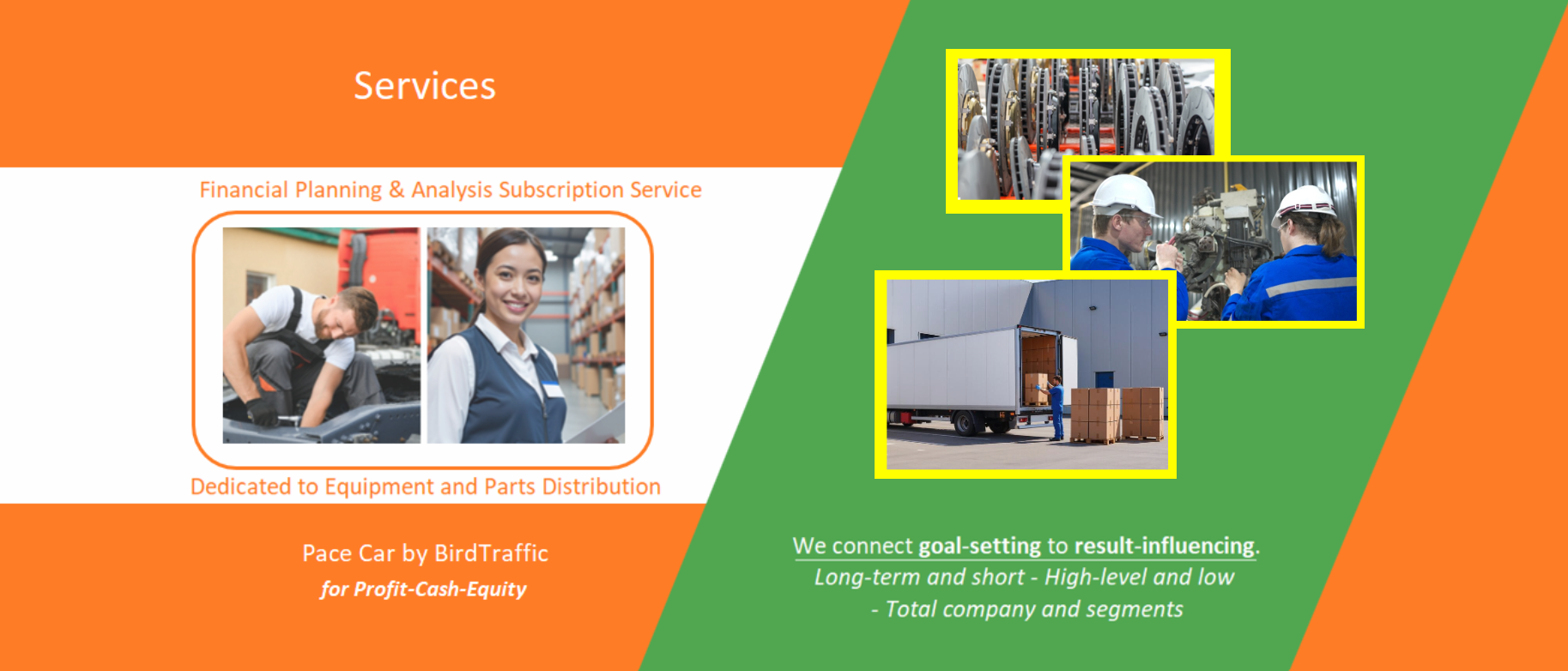 With a Pace Car subscription you will benefit from our guidance tool called PACE Charter, A charter historically is a grant of authority given to an entity. We use the term here as subscribers making agreements with themselves as to what the overarching necessary financial results are, over time, for them. These are stated in terms of Profit, Assets, Cash Flow and Equity, hence PACE. When you subscribe, we work on a PACE Charter set for you - just 4-6 key measures, modified as needed, that can generate a family of company results to use for short and long term plan implementation. They are goals but also they are guardrails. You can see how this works in our demonstration company pages.