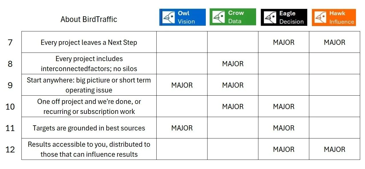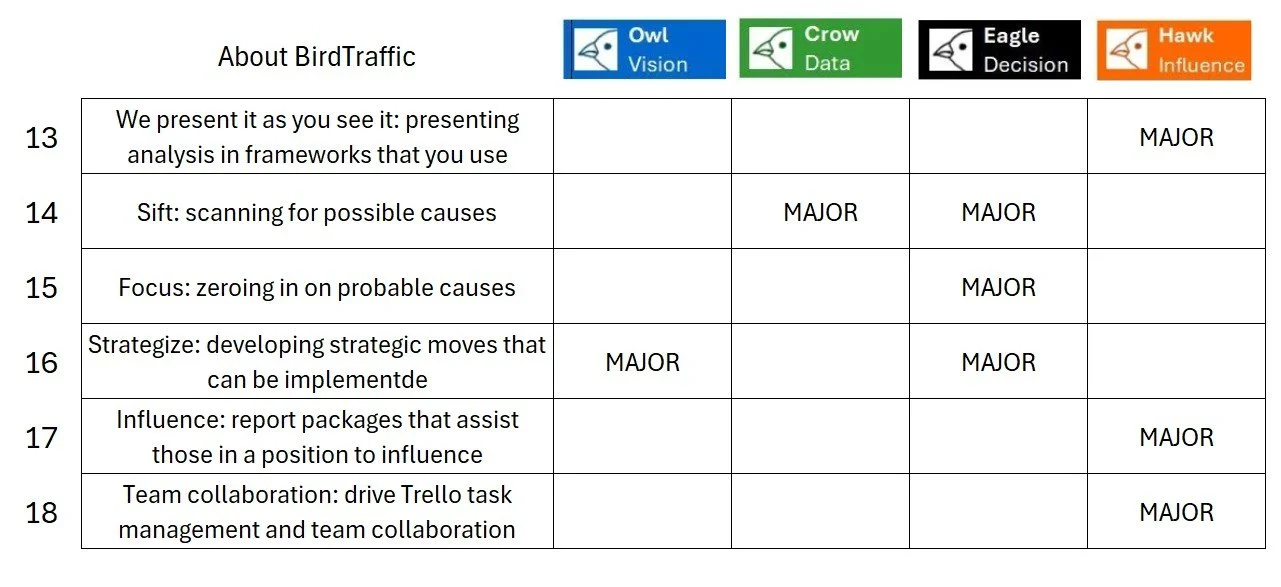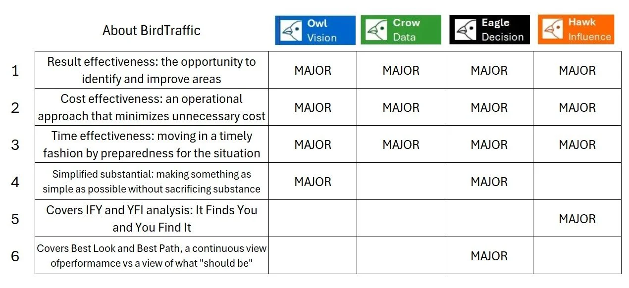 Chart of Attributes of the BirdTraffic Method